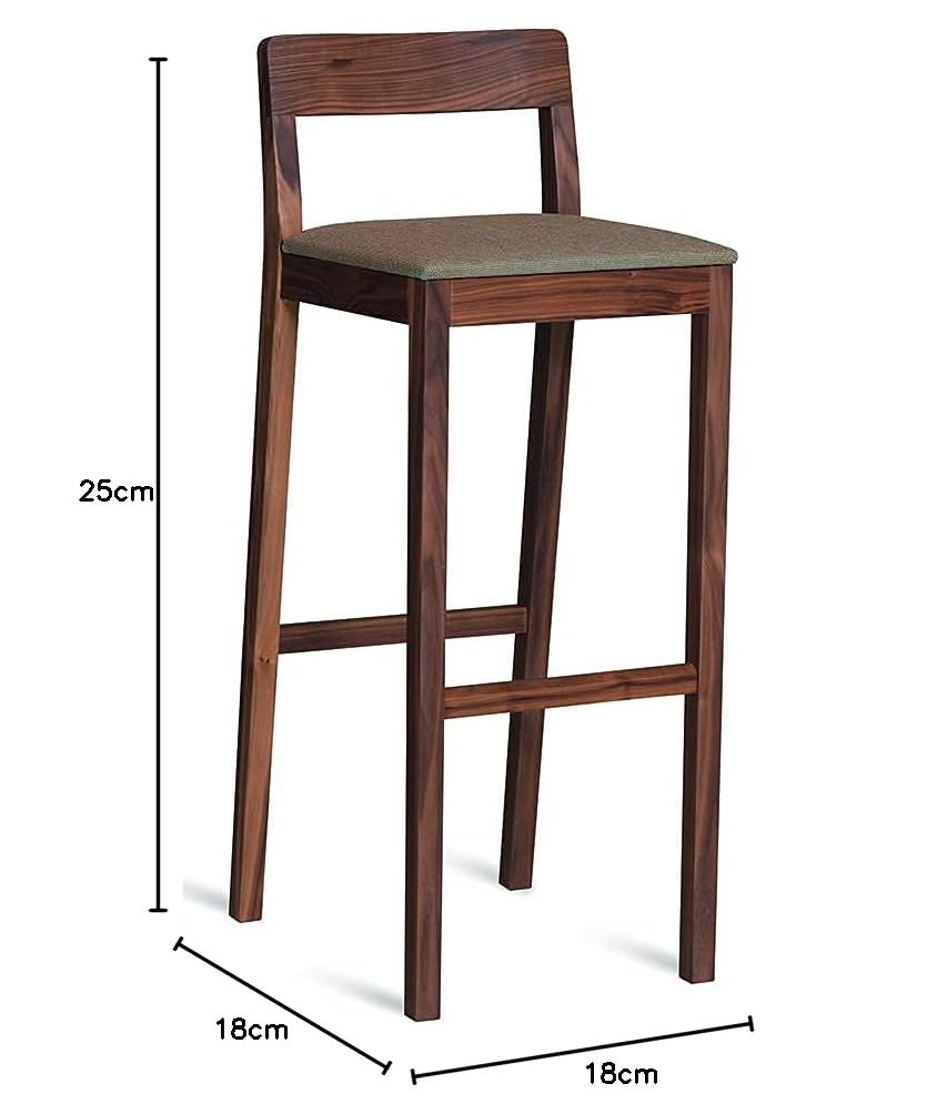 ODEJIA Modern Rectangular Rosewood Wooden Bar Stool in Walnut Finish for Home Bar Chair